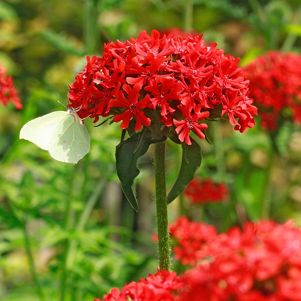 Die scharlachrote Staude gehört zu unseren Lieblingen im Beet: geschickt zwischen mittelhohe andere Stauden gepflanzt, erheben sich ihre großen, halbkugeligen Blütenstände auf den bis 120 cm langen Stängeln genau über den anderen blühenden Stauden. Ein Farbfest z. B. in einem Gelb-Rot-Weißen...
