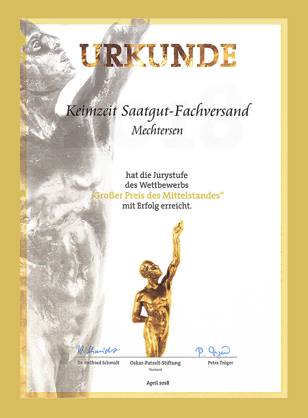 Die Preise sind wichtige Stationen auf unserer Keimzeitreise. Sie versichern uns immer wieder, auf dem richtigen Weg zu sein und zu bleiben. Dank dem damit verbundenen Feedback von Experten konnten wir eine gesunde Firma aufbauen, mit soliden Strukturen, fachlicher Tiefe und dem Herzblut für unser Saatgut.